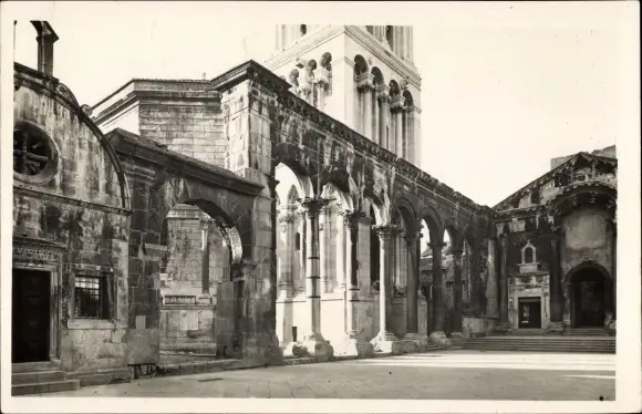 Foto Ak Split Kroatien, Stadtpartie, Turm, Säule