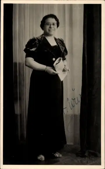 Foto Ak Standportrait einer Künstlerin, Autogramm