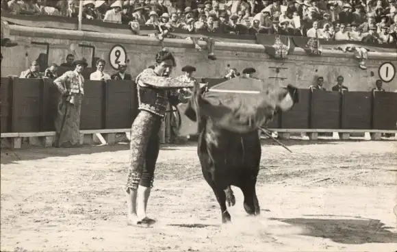 Foto Ak Stierkampf, Torero, Arena, Tuch, Zuschauer