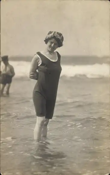 Foto Ak Strand, Frau im Badeanzug, Bademode