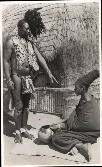 Foto Ak Südafrika, Afrikaner vor einer Strohhütte, Lendenschurz
