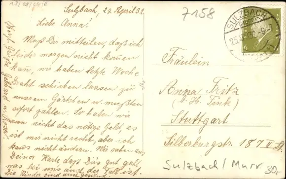 Foto Ak Sulzbach an der Murr, Partie an einem Wohnhaus