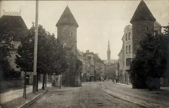 Foto Ak Tallinn Reval Estland, Rathausturm, Straßenpartie, 1918