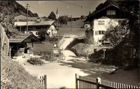 Foto Ak Tiefenbach Oberstdorf im Oberallgäu, Ortspartie, Wohnhäuser, Kirche