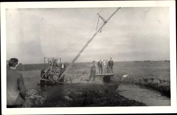 Foto Ak Traktor, Nutzfahrzeug, Fluss, Felder