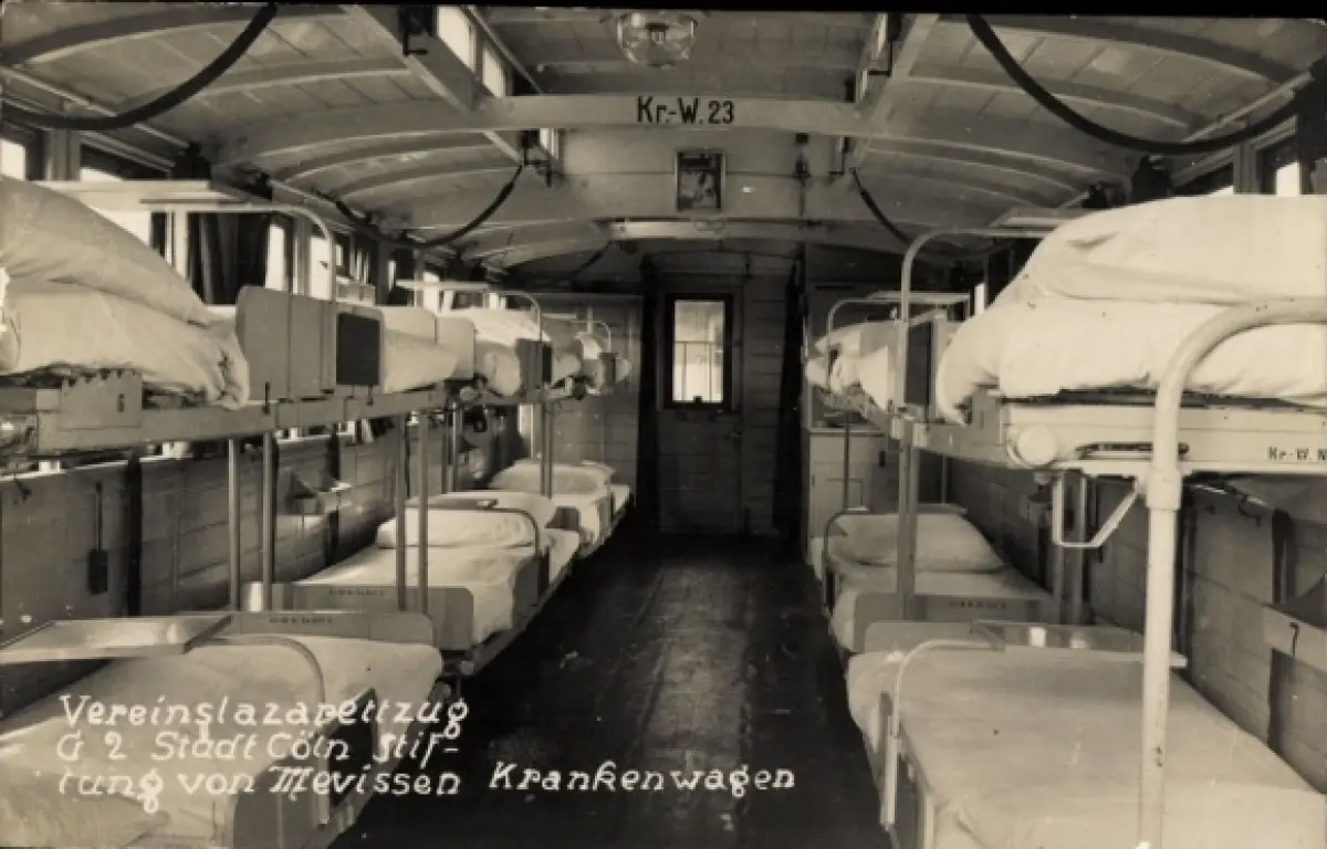 Foto Ak Vereinslazarett-Zug G 2 Stadt Cöln, Stiftung von Mevissen, Krankenwagen Kr.-W. 23, 1. WK