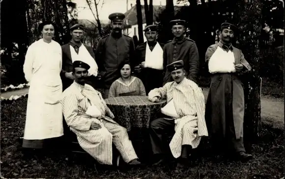 Foto Ak Verwundete deutsche Soldaten in Uniformen im Lazarett