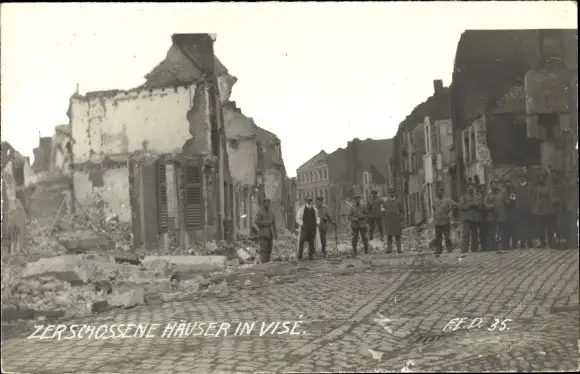 Foto Ak Visé Wallonien Lüttich, Zerschossene Häuser