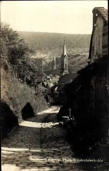 Foto Ak Weidenthal in der Pfalz, Weidenthalerhöhle, Straßenpartie, Kirche
