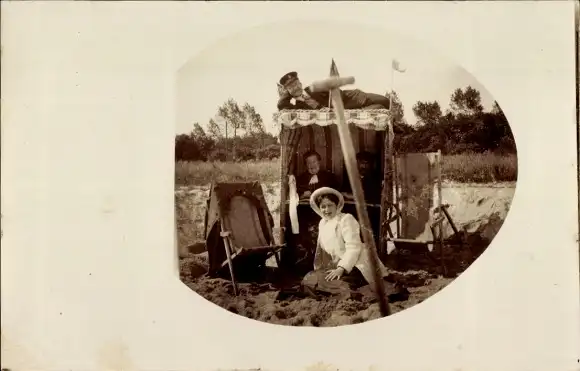Foto Ak Westerland auf Sylt, Menschen am Strand, Strandkorb