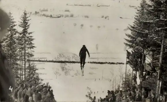 Foto Ak Wintersport, Skispringer, Zuschauer