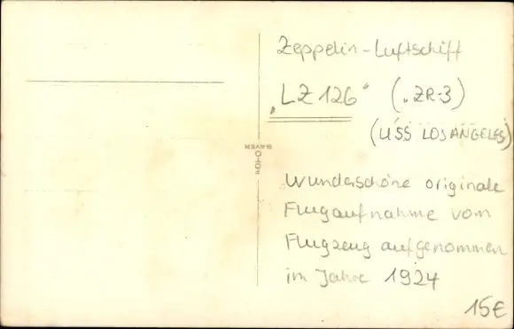 Foto Ak Zeppelin Luftschiff LZ 126, ZR 3, USS Los Angeles, Fliegeraufnahme 1924