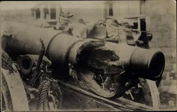 Foto Ak Zerstörtes russisches Geschütz, Kriegsbeute, I.WK