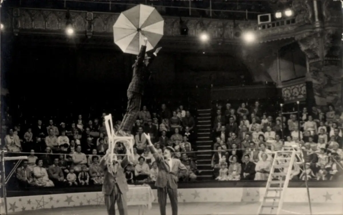Foto Ak Zirkusvorstellung, Clowns, Zuschauer