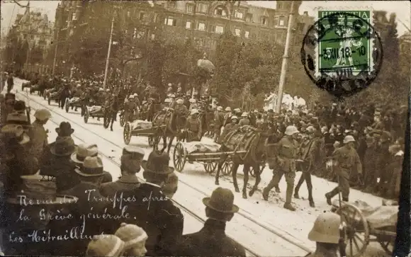 Foto Ak Zürich Stadt Schweiz, Revue des Troupes apres la Greve generale