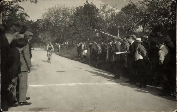 Foto Ak Zuschauer bei einem Radrennen, Radrennfahrer bei der Zieleinfahrt