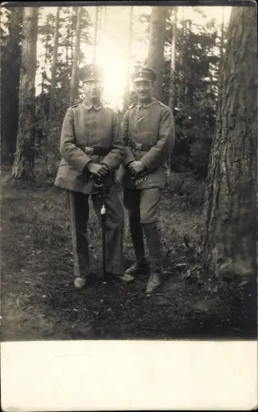 Foto Ak Zwei Deutsche Soldaten in Uniformen im Wald, Portrait