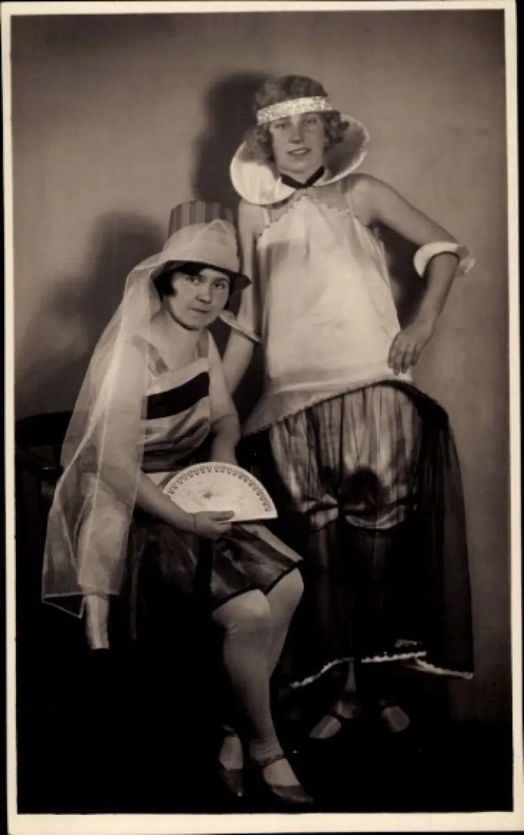 Foto Ak Zwei Frauen in Kostümen, Porträt, Fächer