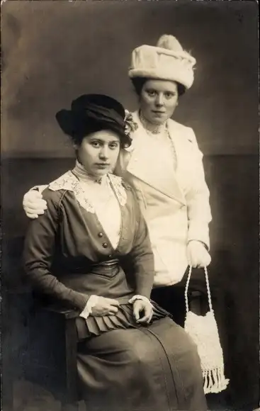 Foto Ak Zwei Frauen mit Hüten, Handtasche, Portrait