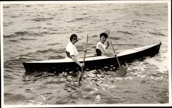 Foto Ak Zwei Mädchen in einem Kanu, Rudern