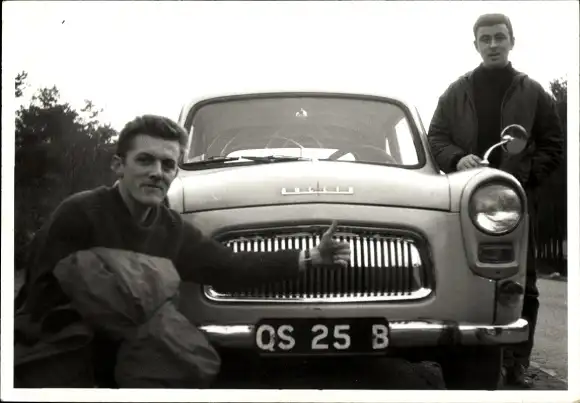 Foto Ak Zwei Männer am Auto, Kennzeichen QS25B