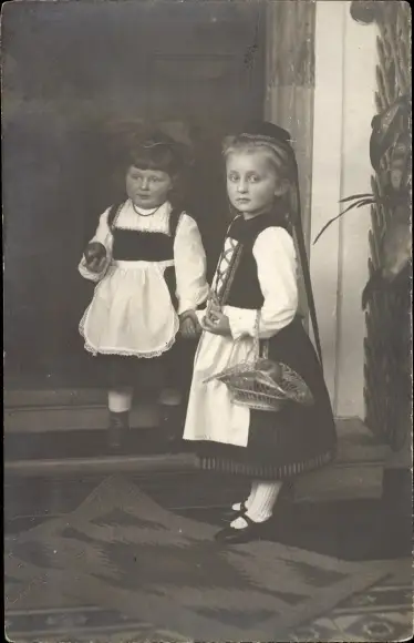 Foto Ak Zwei kleine Mädchen in Trachten