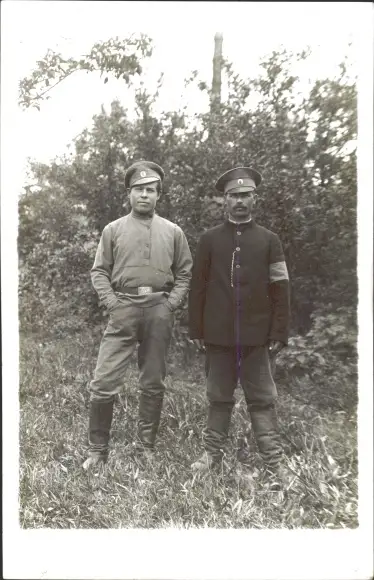 Foto Ak Zwei russische Soldaten in Uniform, Standportrait