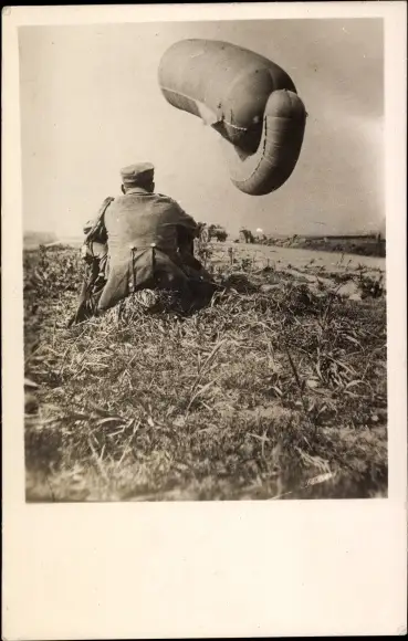 Foto Ak deutscher Soldat in Uniform, Fesselballon