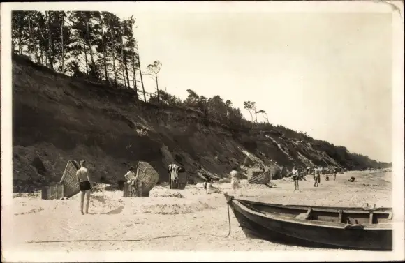 Foto Ak Śliwin Neuschleffin Rewal Rewahl Pommern, Strandpartie, Ruderboot