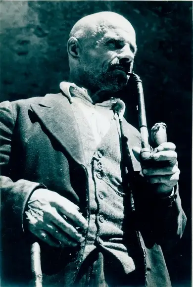 Foto Alter Rentner, Mann mit Pfeife, Portrait