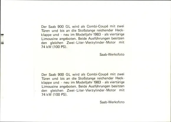Foto Auto, Saab 900 GL, Combi-Coupe, Autokennzeichen FZK 124