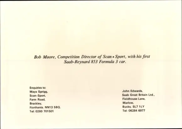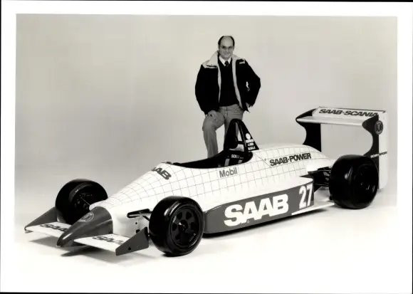 Foto Bob Moore, Renndirektor von Scan + Sport, Saab Reynard 853 Formel 3 Rennauto