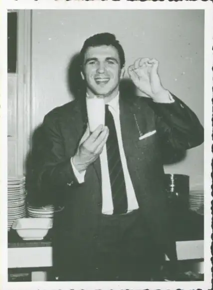 Foto Boxer Bubi Scholz, Portrait mit einem Glas Milch