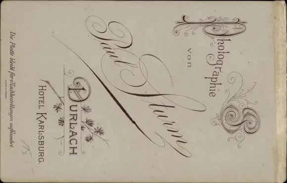 Zustand, siehe Scan, ungelaufen- Fotograf Paul Sturm, Durlach in Baden, Hotel Karlsburg - ca 11 cm X 17 cm