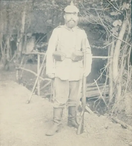 Foto Deutscher Soldat in Uniform, Standportrait, Gewehr