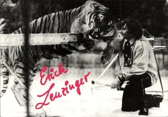 Foto Dompteur Erich Leuzinger, Tiger, Zirkus