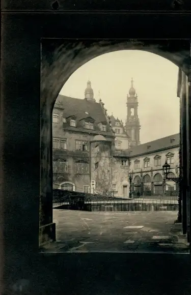 Foto Dresden, Blick durch ein Tor, Kirchturm