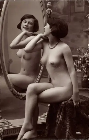 Foto Erotik, Frau vor einem Spiegel sitzend, Frauenakt