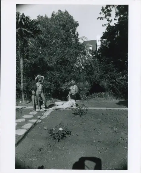 Foto Erotik Lilo Korenjak, zwei Pärchen posieren in Garten