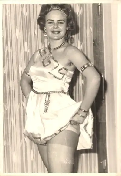 Foto Frau in weißem Kleid, Strümpfe, Unterwäsche, Erotik