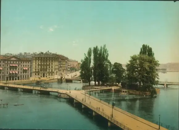 Foto Genève Genf Stadt, Teilansicht, Ile Rousseau, Photochromie