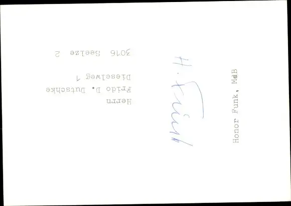 Foto Honor Funk, MdB, Autogramm