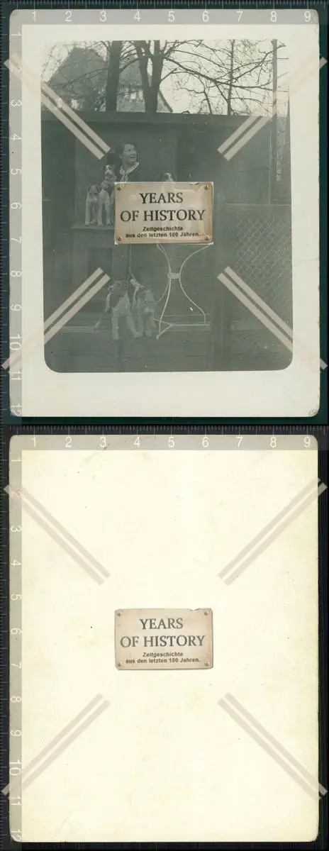 Foto Hund Foxterrier 1930 junge Dame mit mehreren Hunden