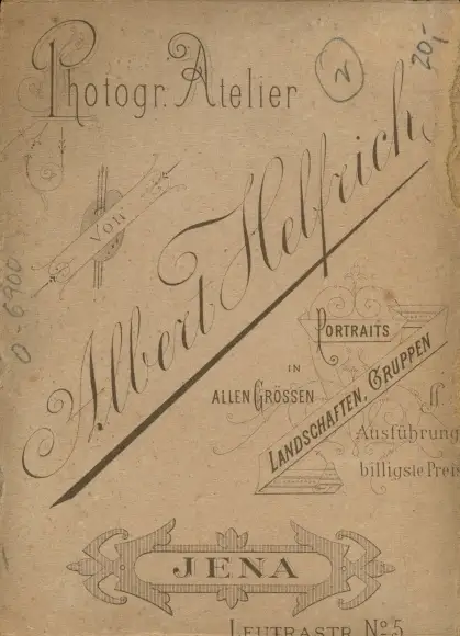 Zustand, siehe Scan, ungelaufen- Fotostudio/Atelier: Albert Helfrich, Jena - ca 14 cm X 10 cm