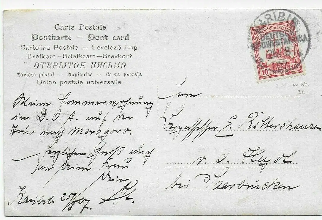 Foto Karte Karibib, 1907 nach Saarbrücken