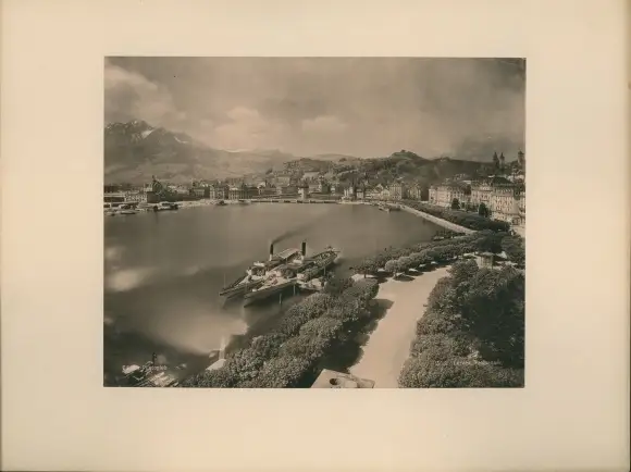 Foto Luzern Stadt Schweiz, Dampferanlegestelle, Panorama