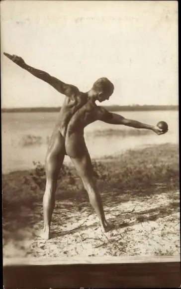 Foto Männerakt, nackter Mann mit Ball, Po, Rücken