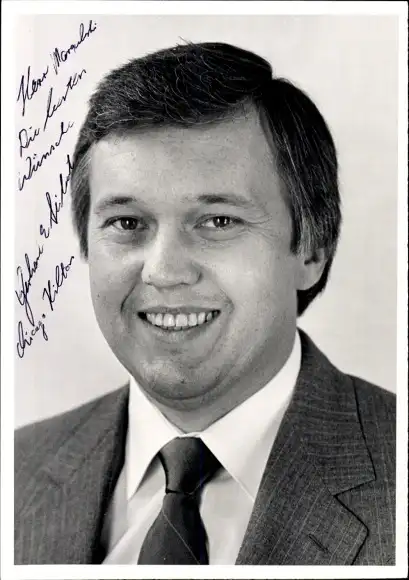 Foto Mann in Anzug, Krawatte, Porträt, Autogramm