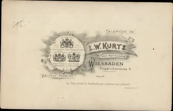 Zustand, siehe Scan, ungelaufen- Fotograf L. W. Kurtz, Wiesbaden, Friedrichstraße 4 - ca 11 cm X 17 cm