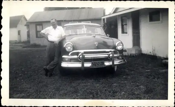 Foto Mann neben einem Automobil 1951